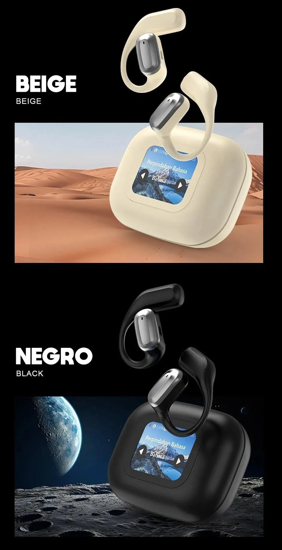 Diseñados pensando en tu comodidad y estilo de vida, estos auriculares ofrecen una autonomía prolongada y resistencia al agua, adaptándose a tus actividades diarias. La pantalla táctil LCD proporciona un control intuitivo, haciendo que la experiencia sea aún más fluida.