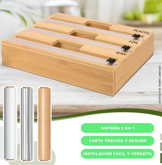 Olvídate del desorden en tus cajones y encimeras. Con nuestro Dispensador 3 en 1, tendrás a la mano papel aluminio, vinipel, papel mantequilla u otro papel que uses en tu cocina de forma fácil y organizada. Su diseño elegante y funcional lo hace ideal para cualquier cocina.
