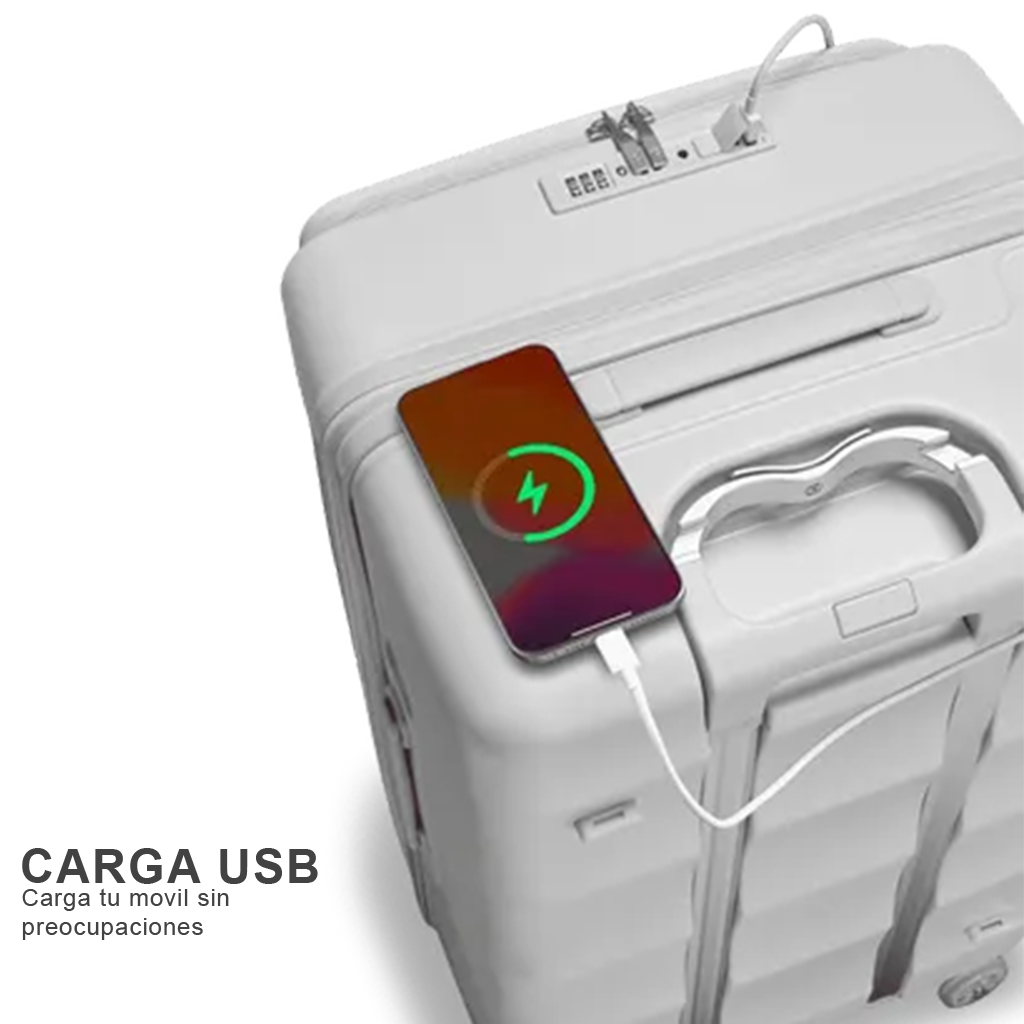 Viaja seguro con el bloqueo TSA con clave y mantén tus dispositivos cargados con el puerto USB integrado, sin abrir la maleta.