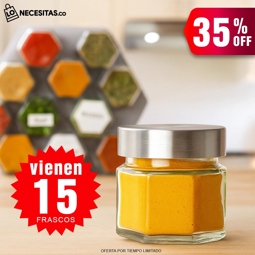 Cocinar no tiene por qué ser un caos. Con estos tarros magnéticos en forma de panal, tus especias quedan organizadas, visibles y a la mano. Se pegan directo al refri o a cualquier superficie metálica, y hacen que tu cocina se vea como de revista.