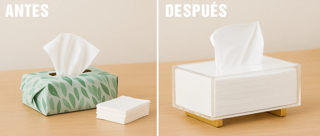Funcional y decorativo, este contenedor mantiene tus pañuelos organizados con estilo. Su diseño versátil lo hace ideal para cualquier espacio: comedor, sala, baño u oficina.