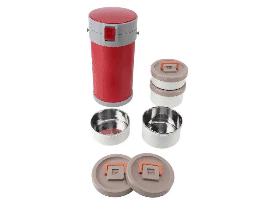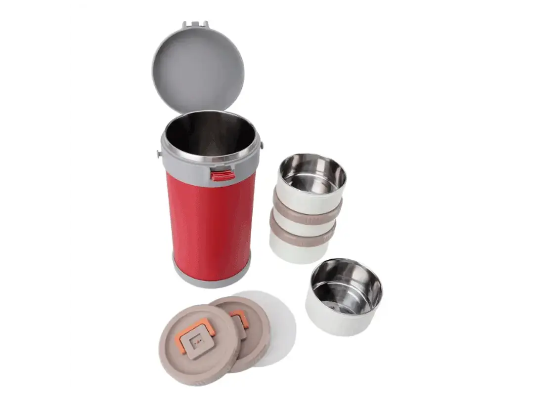 Su diseño cilíndrico y apilable maximiza la eficiencia del espacio mientras mantiene tus comidas organizadas y accesibles