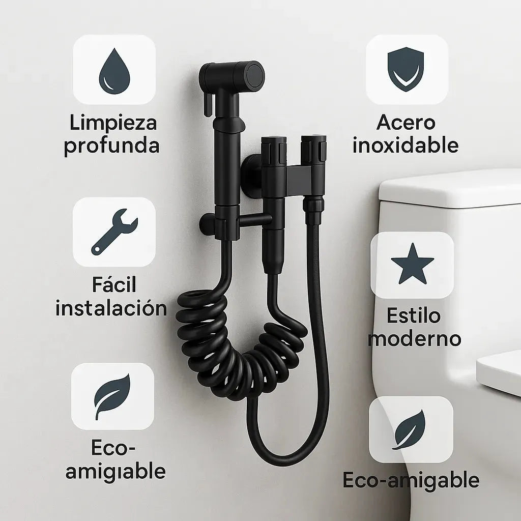 Disfruta de una higiene superior con este rociador tipo bidet, que garantiza una limpieza más profunda y delicada que el papel higiénico tradicional.