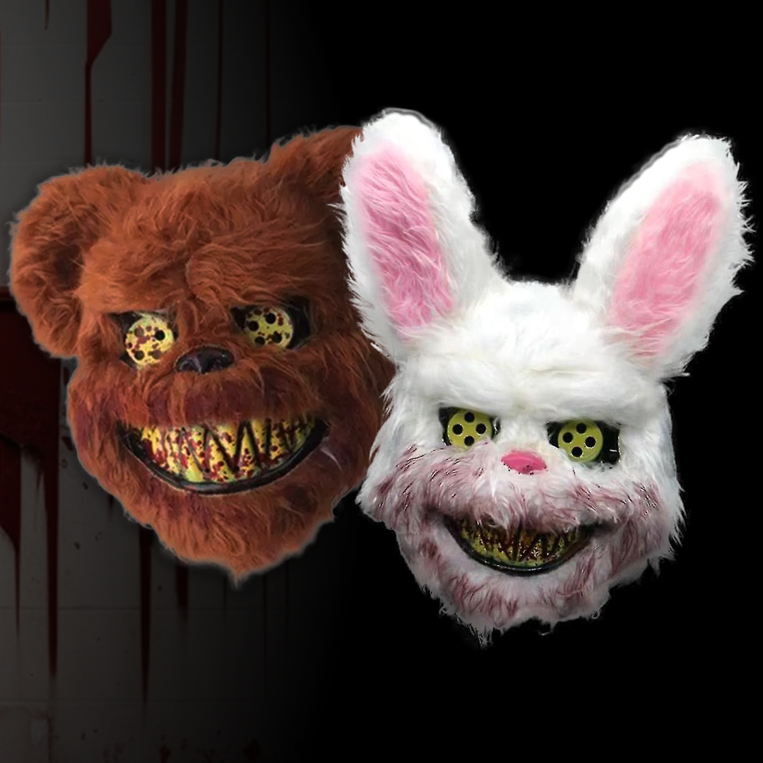 ¿Listo para sorprender a todos en Halloween? Nuestra máscara de Halloween peluda, con detalles sangrantes y un diseño que combina lo adorable del conejo y lo aterrador del oso malo