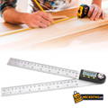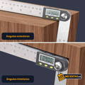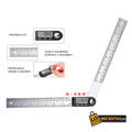 Este Medidor de ángulo digital ofrece la comodidad de una regla de escala en milímetros y pulgadas junto con las capacidades de un transportador, lo que facilita la medición de ángulos internos/externos y mediciones rápidas de longitud en una sola herramienta.