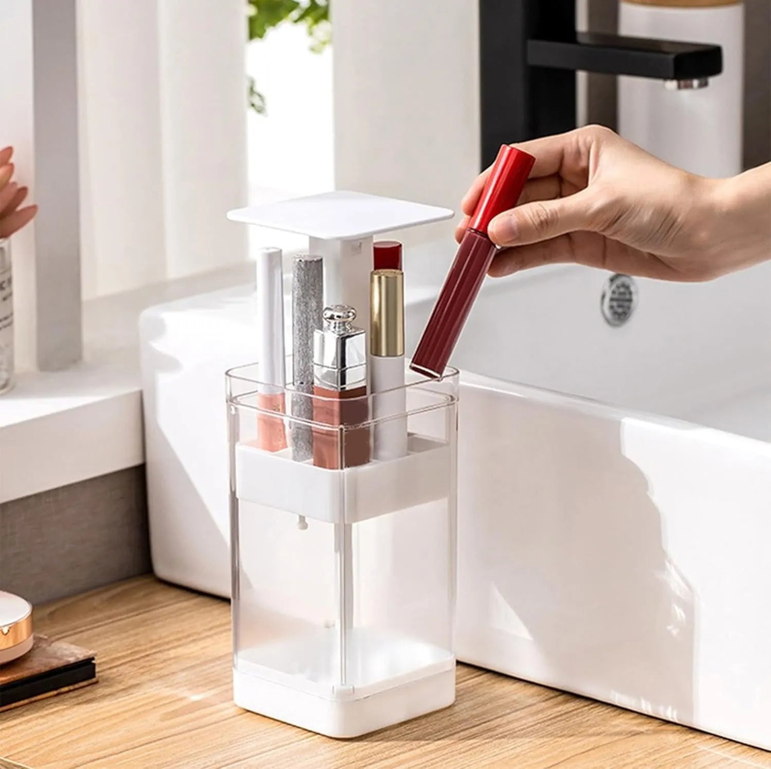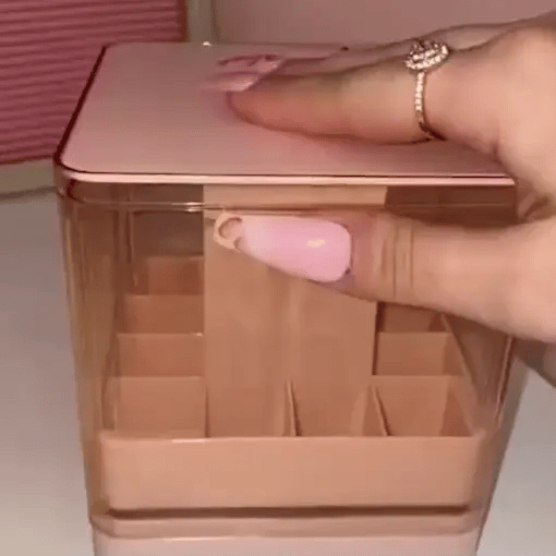 Este producto no solo es un accesorio, es una solución inteligente. La tapa levantable mantiene tus cosméticos libres de polvo, mientras que el material resistente asegura durabilidad y un look sofisticado en tu espacio. Además, su estructura compacta optimiza cada centímetro de tu tocador. Una inversión práctica que combina organización con estética.