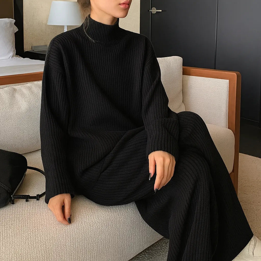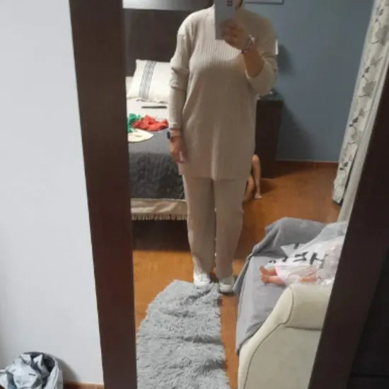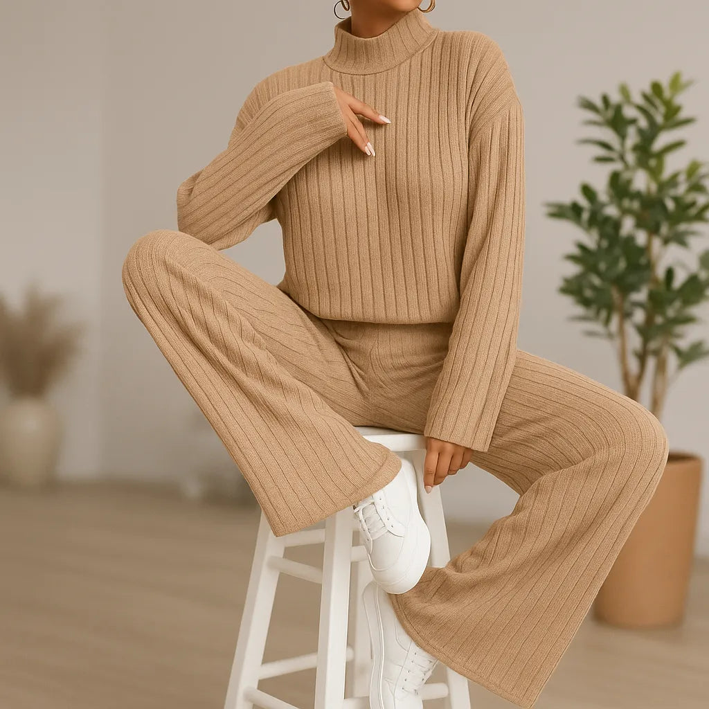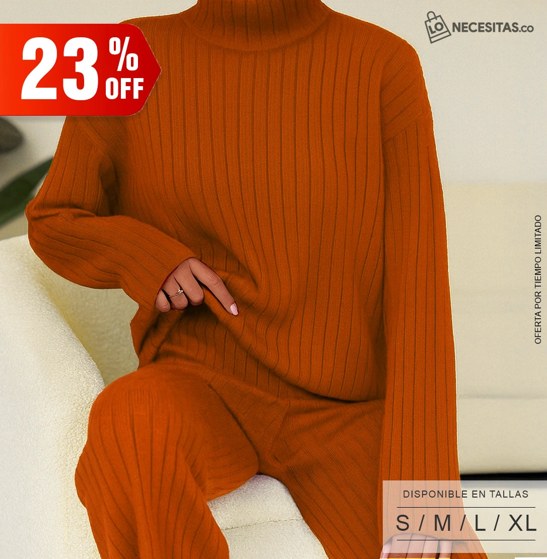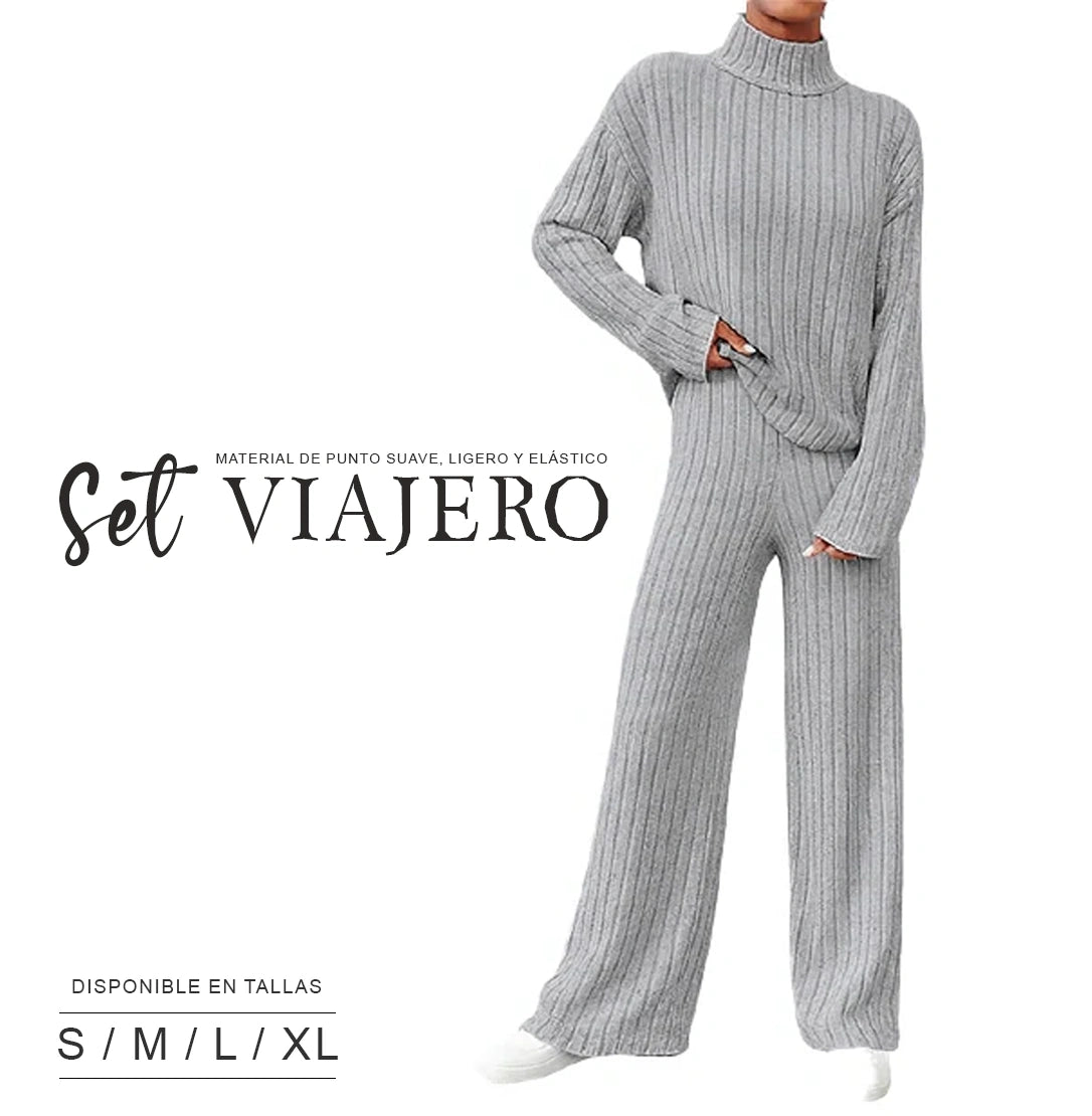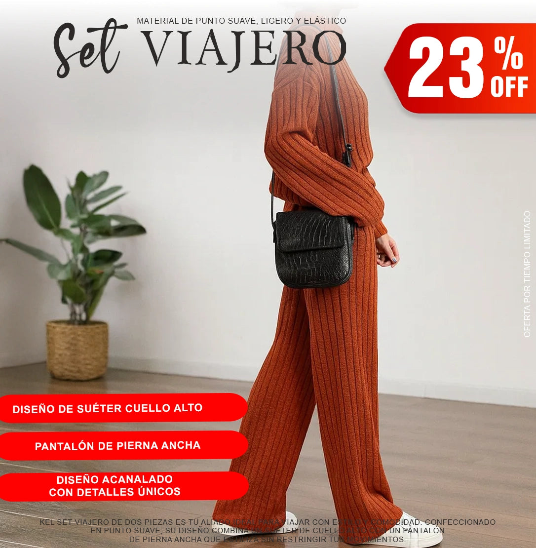 El Set Viajero es un elegante conjunto de dos piezas diseñado para brindarte comodidad y estilo en cada ocasión. Su suéter de punto con cuello alto y pantalón de pierna ancha crean un look moderno y sofisticado, ideal para viajar, salir o relajarte en casa. Fabricado en material suave y elástico, se adapta a tu cuerpo mientras resalta tu silueta sin perder confort.