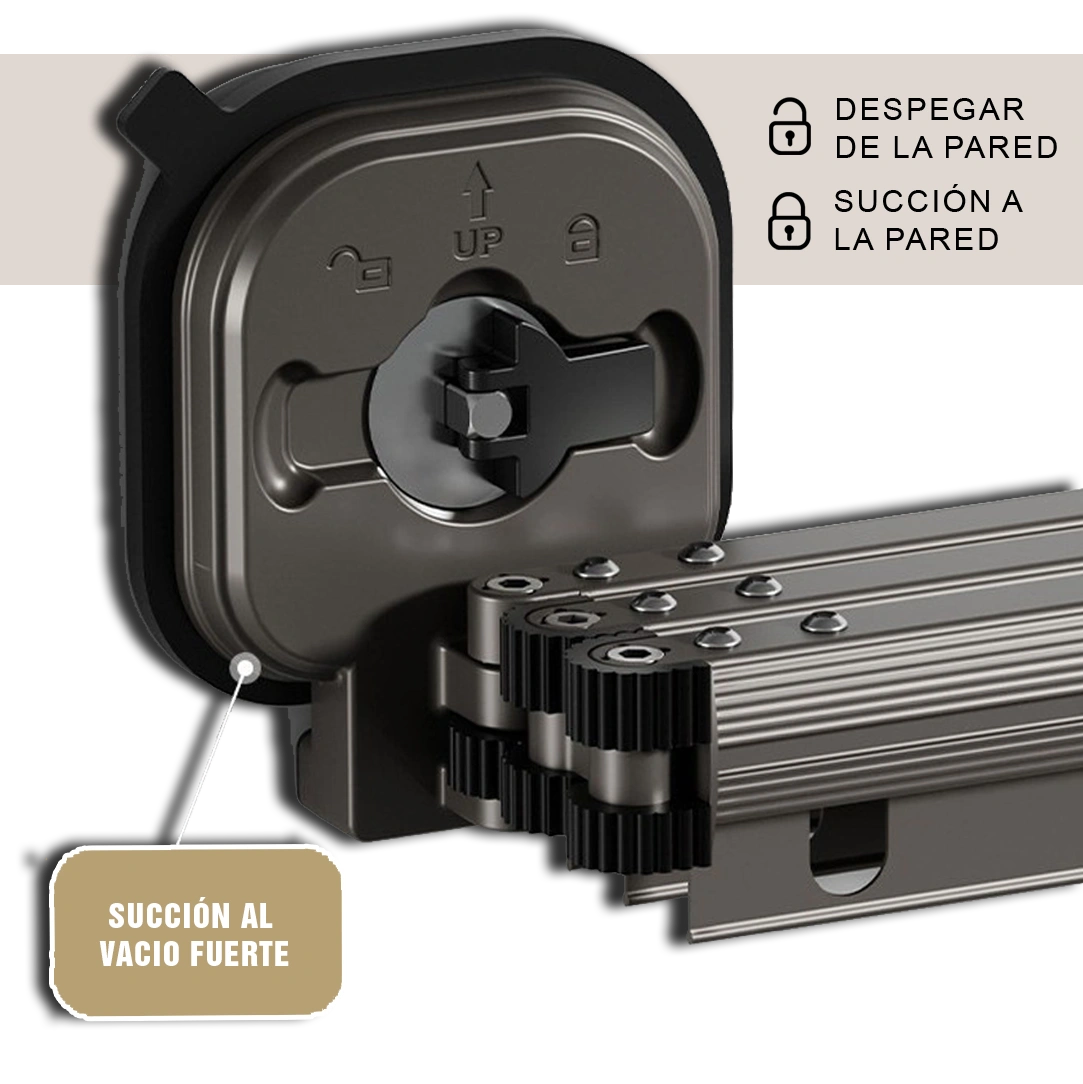 Olvídate de clavos y tornillos. Gracias a su potente fijación por ventosas, puedes instalar este rack en segundos en cualquier superficie lisa y sin dejar marcas.