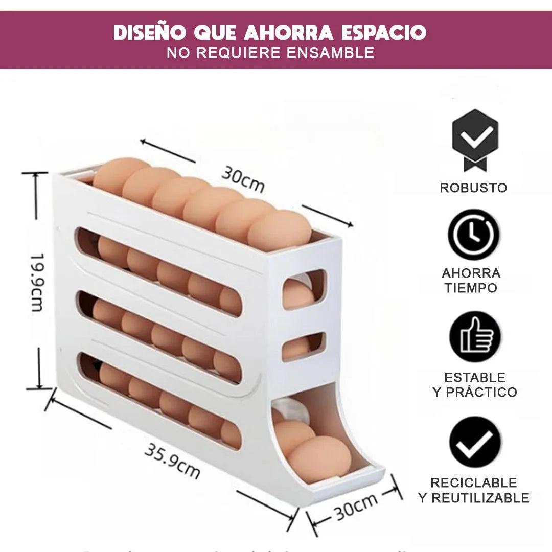 Este organizador está diseñado para brindarte comodidad y eficiencia en la cocina, eliminando el desorden y evitando que los huevos se queden olvidados en el fondo del refrigerador.