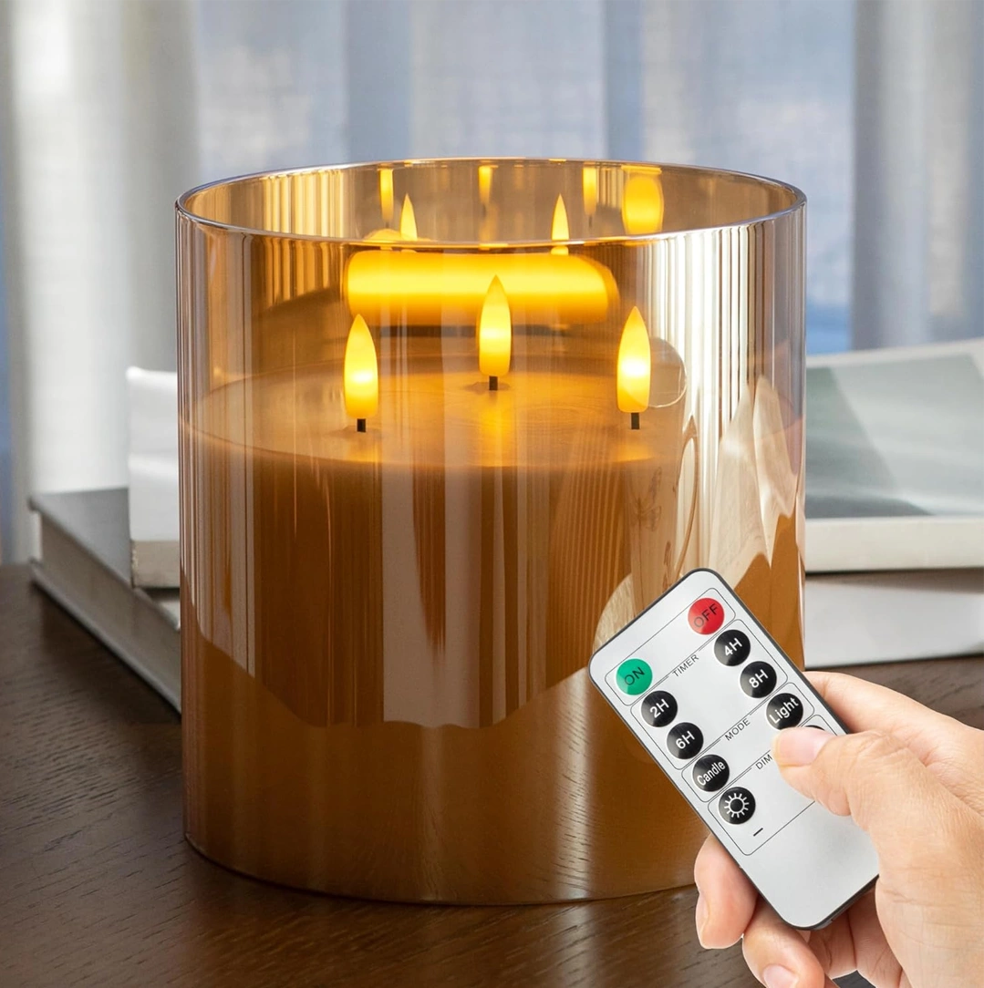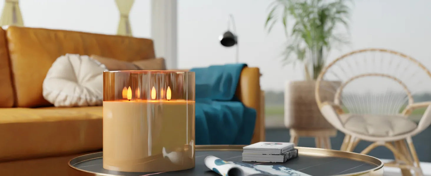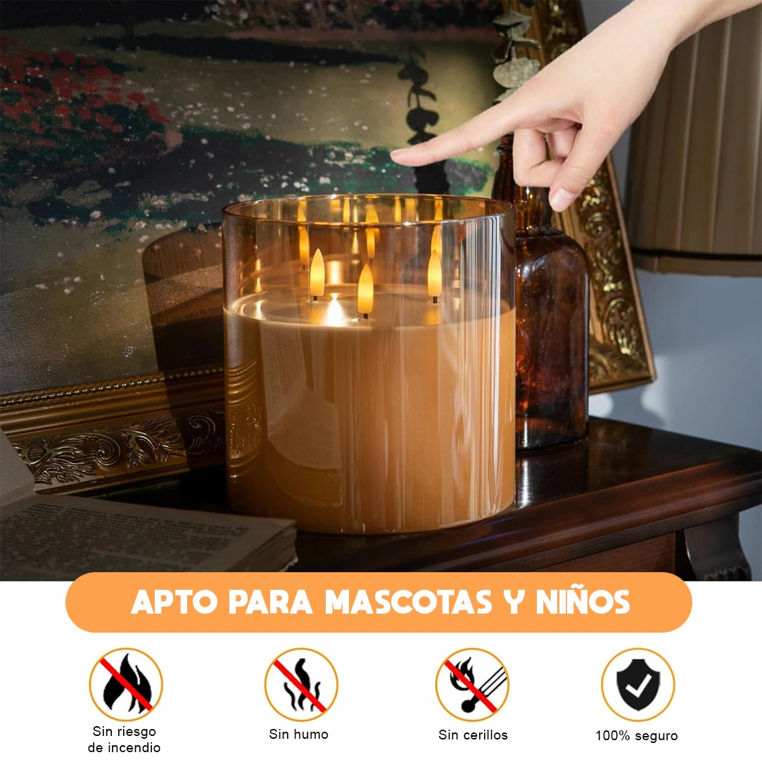 Con un diseño sofisticado y realista, esta vela de cristal con tres mechas LED crea una atmósfera acogedora y elegante, perfecta para cenas, eventos o simplemente para relajarte en casa.
