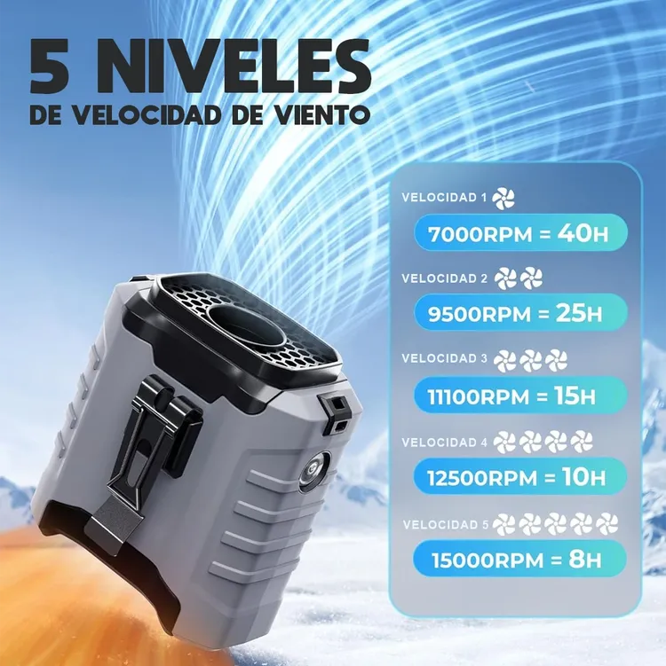 A pesar de su tamaño compacto, ofrece una ventilación eficaz para refrescar tu torso y rostro.