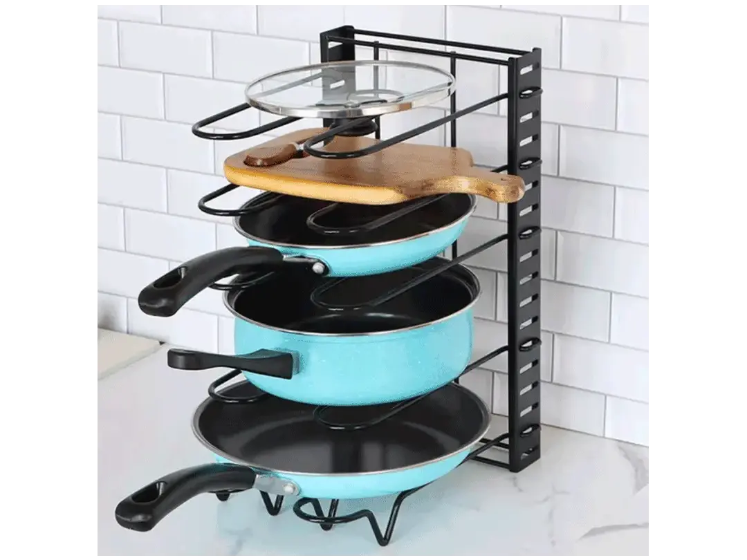 No más caos en tu cocina. Con nuestro organizador, cada tapa y sartén tiene su lugar específico, reduciendo el tiempo que pasas buscando y aumentando el que inviertes en crear deliciosas comidas para ti y tus seres queridos. Dale a tu cocina el regalo del orden y la funcionalidad.
